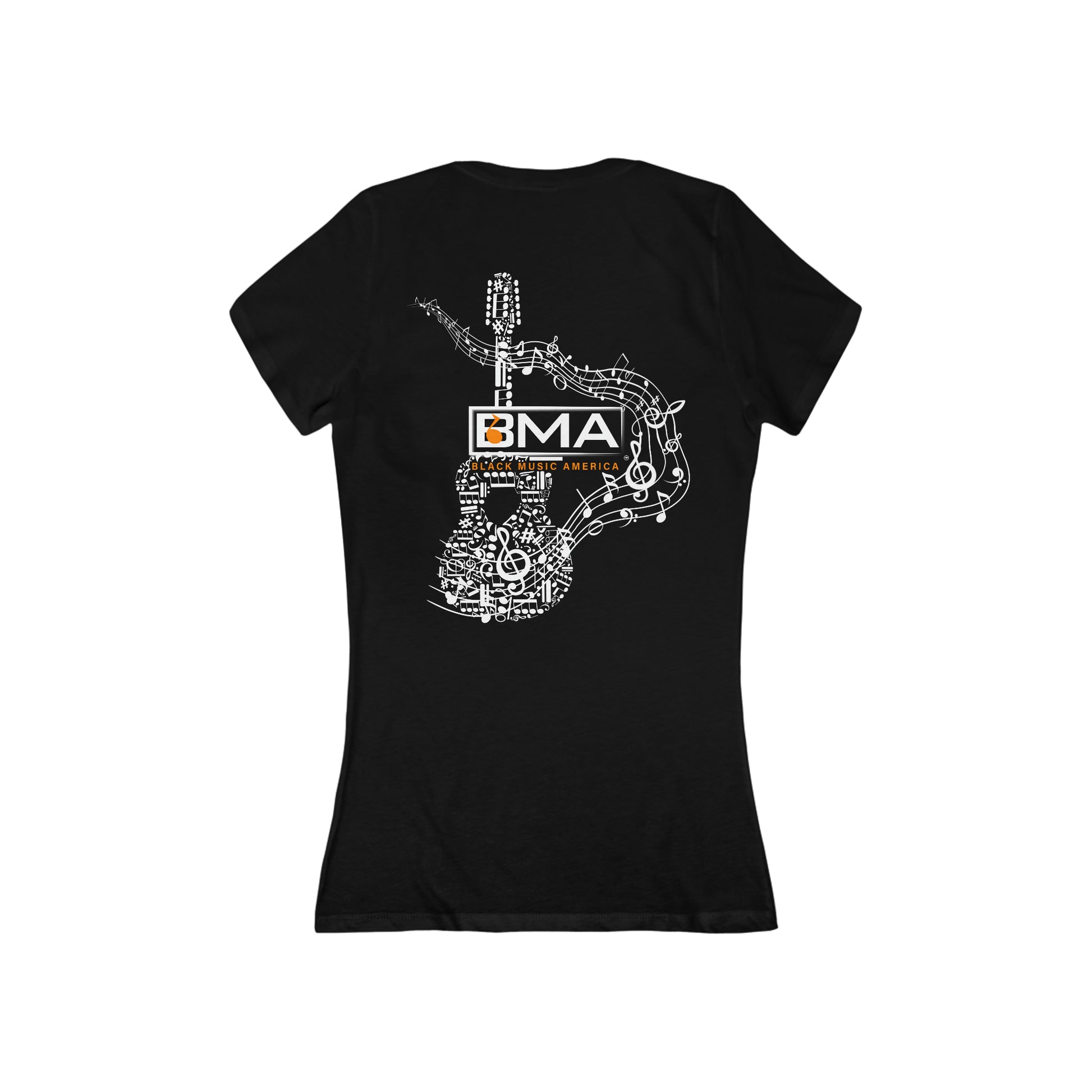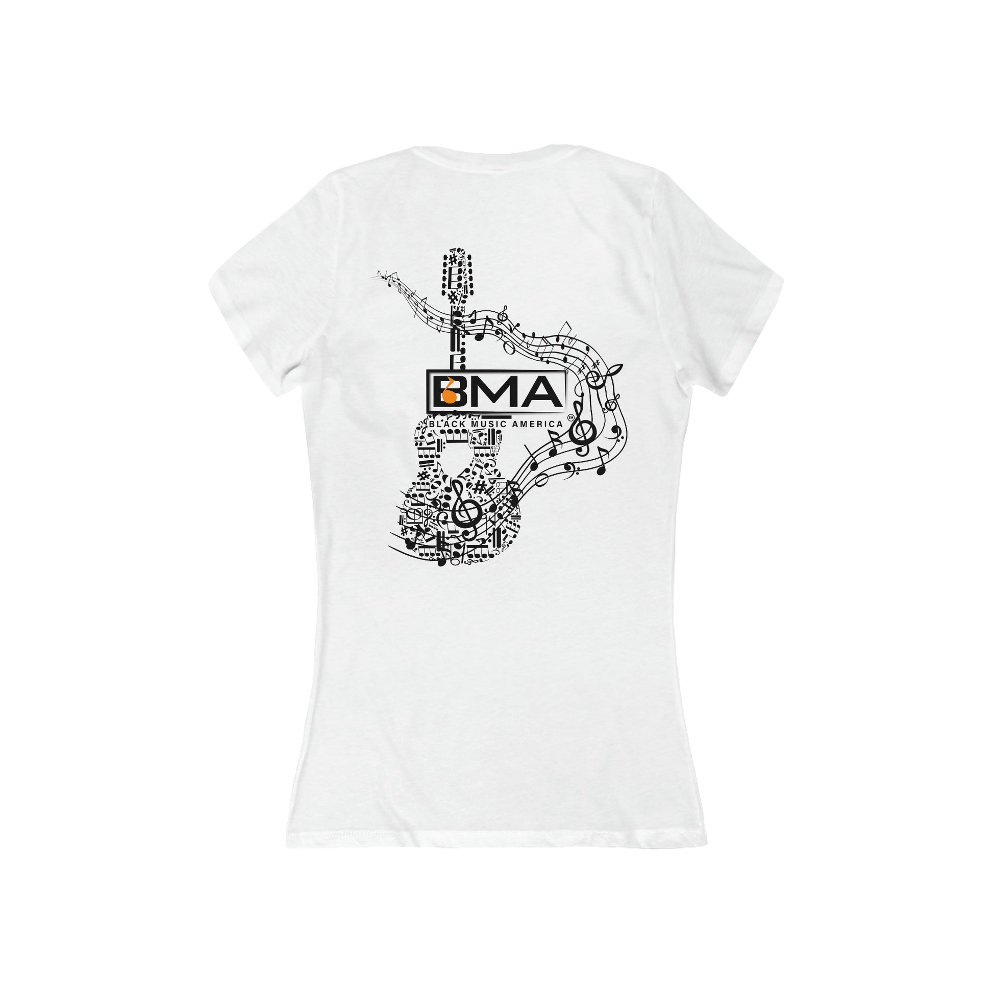 Women's Jersey Short Sleeve Deep V-Neck Tee BMA Guitar Back Design