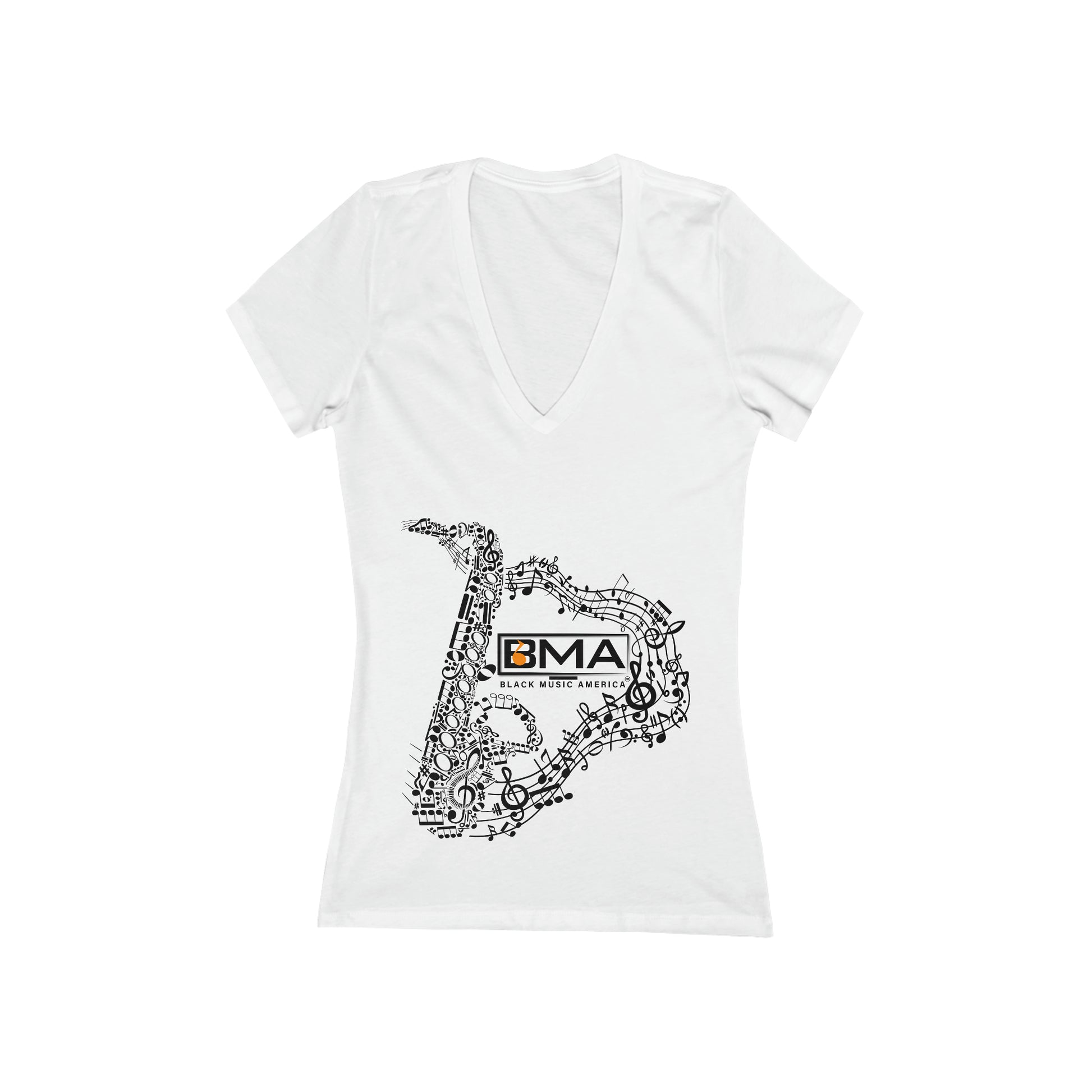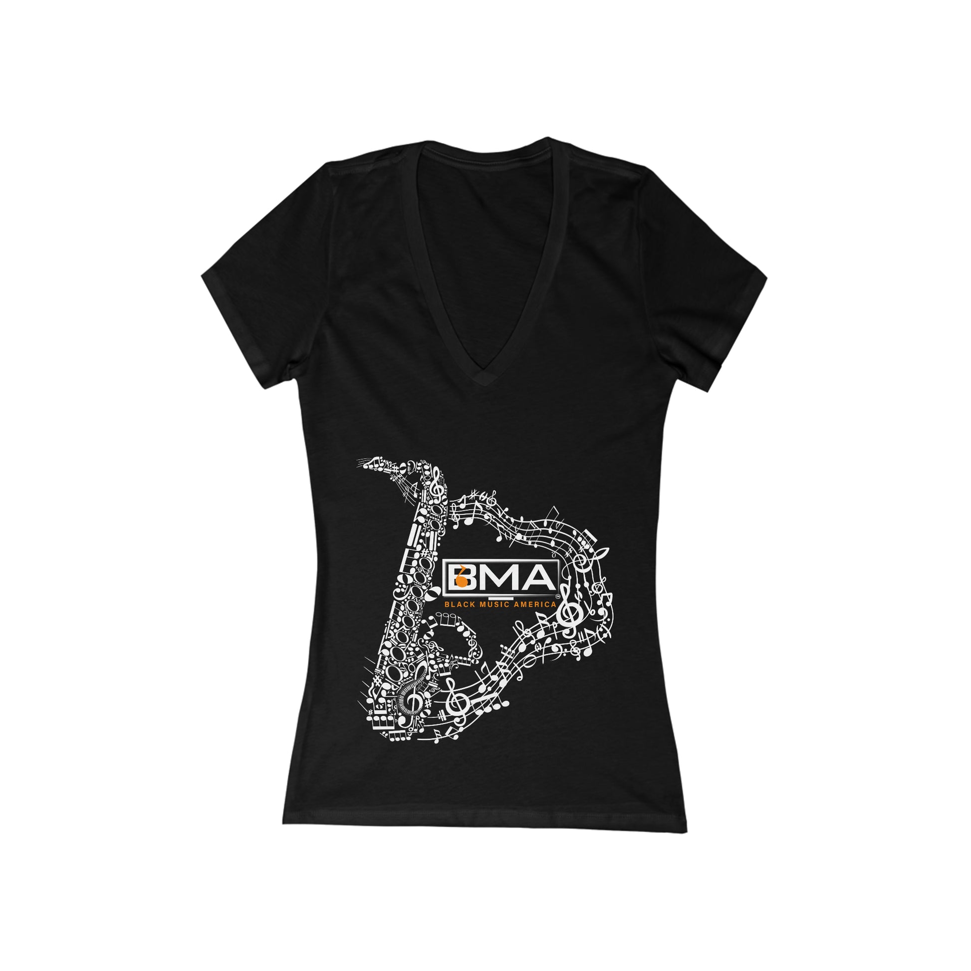 Women's Jersey Short Sleeve Deep V-Neck Tee BMA Saxophone Front Design